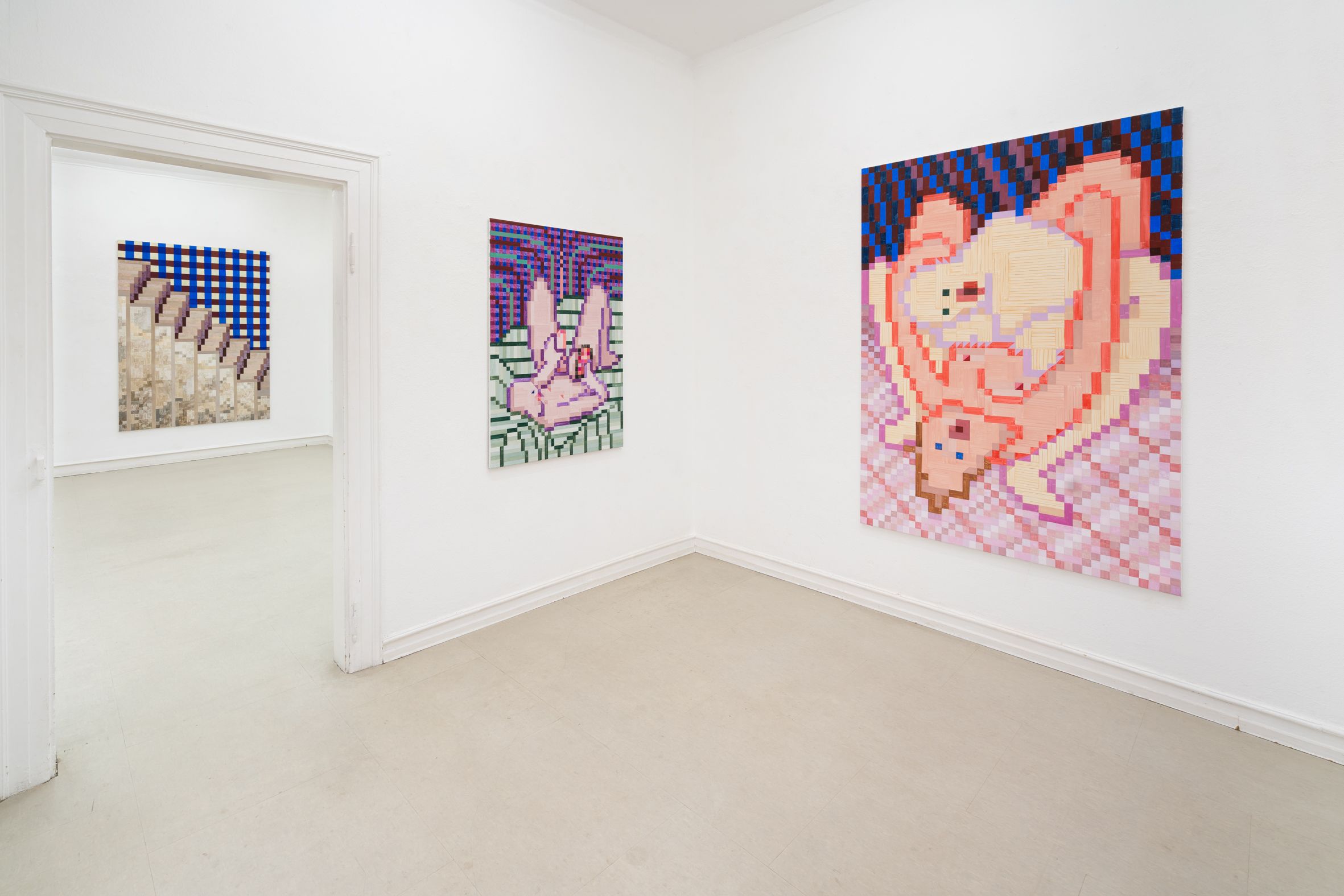 In her paintings, Maria Schumacher deals with the creation of narrative-psychological spaces within which she explores the complexity of relationship structures.