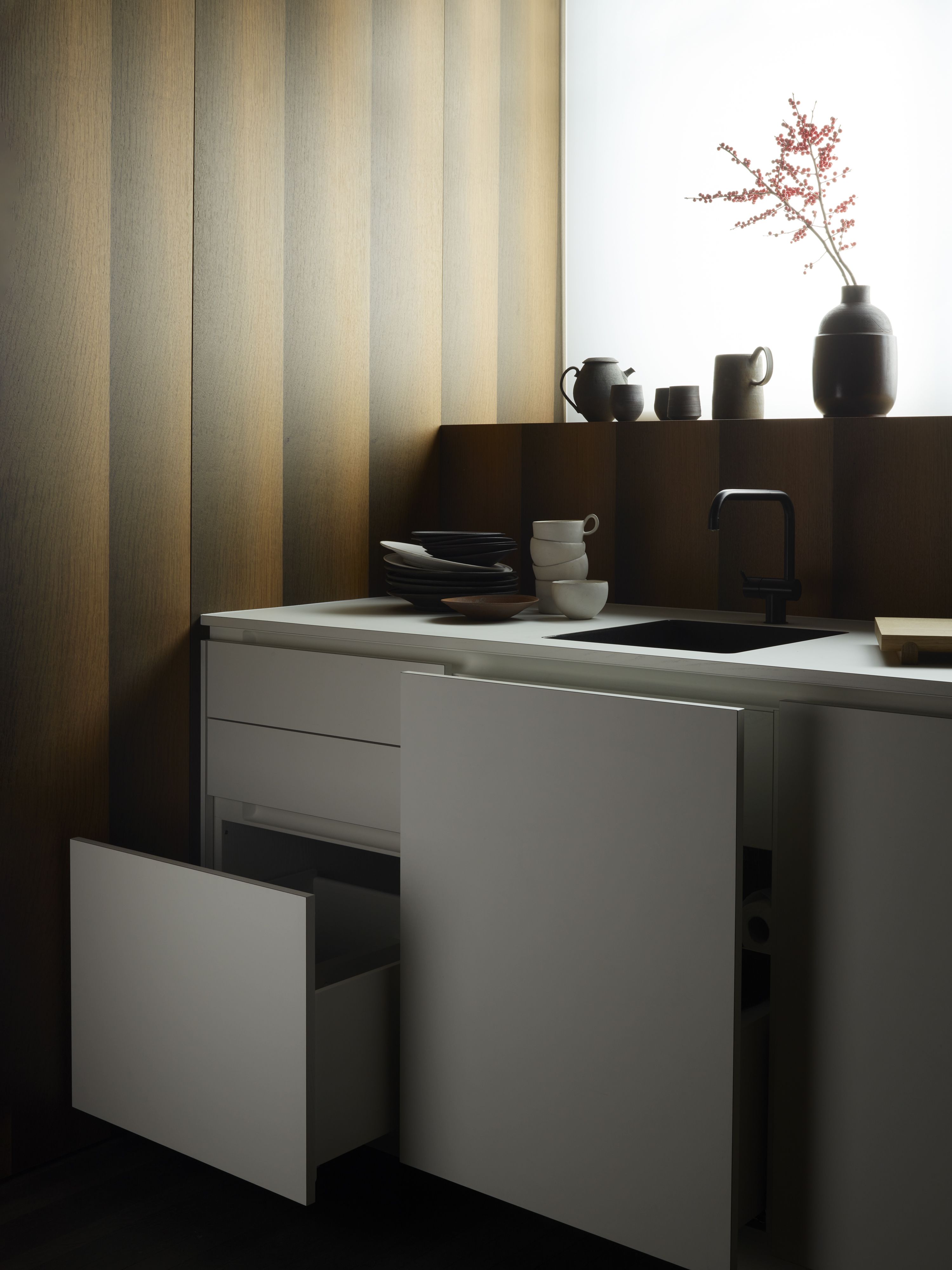 Der Entwurf der Küche entstammt einer handwerklichen Denkweise. Er vereint alle Merkmale von Qualität, Präzision, Perfektion und einem hohen Detailierungsgrad. Die Produktion der Küchen erfolgt keineswegs auf der hölzernen Werkbank. Sie ist vielmehr das Abbild einer hochtechnologischen, vollautomatisierten Fertigungsstraße. Dank der Kombination dieser Denk- und Bauweise gestalten wir Küchen, die alle individuellen Wünsche und architektonischen Herausforderungen lösen. Küchen, die Vorausdenken mit Nachhaltigkeit verbinden.