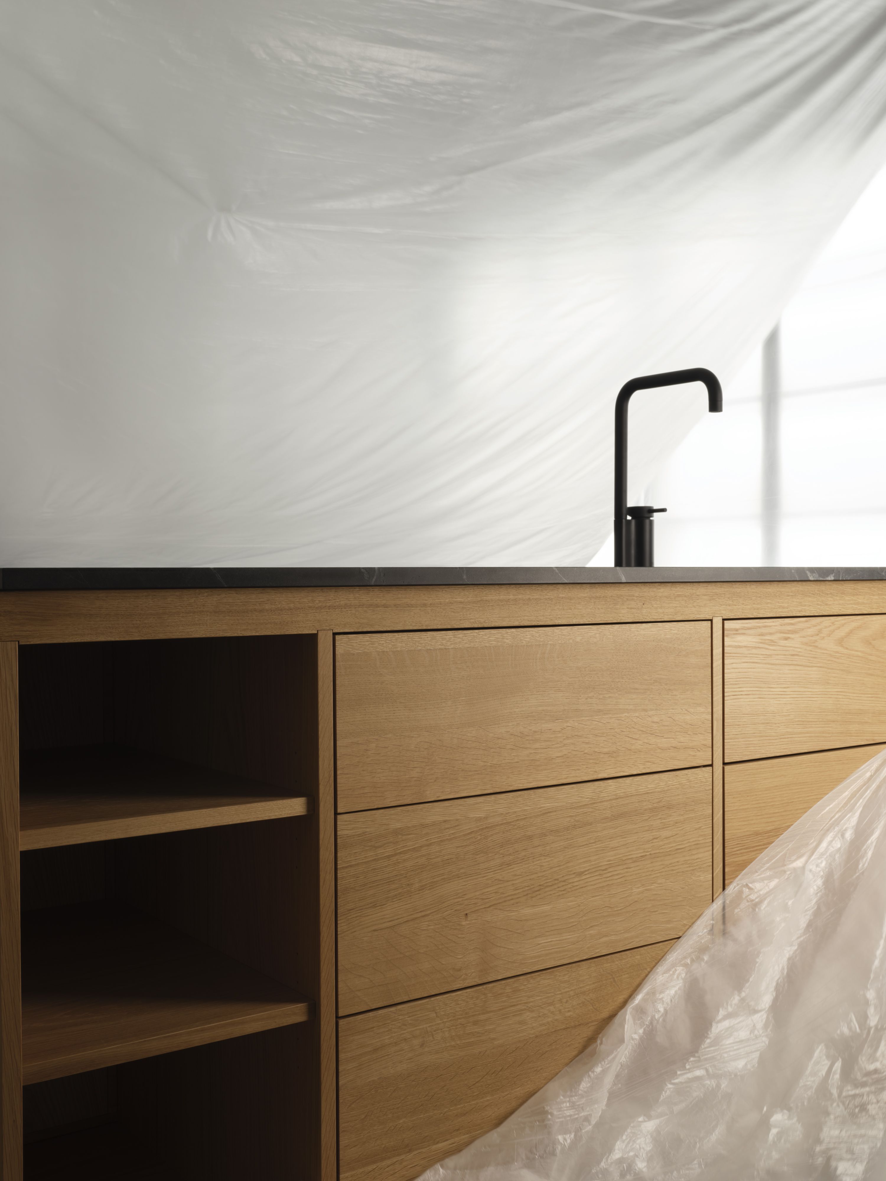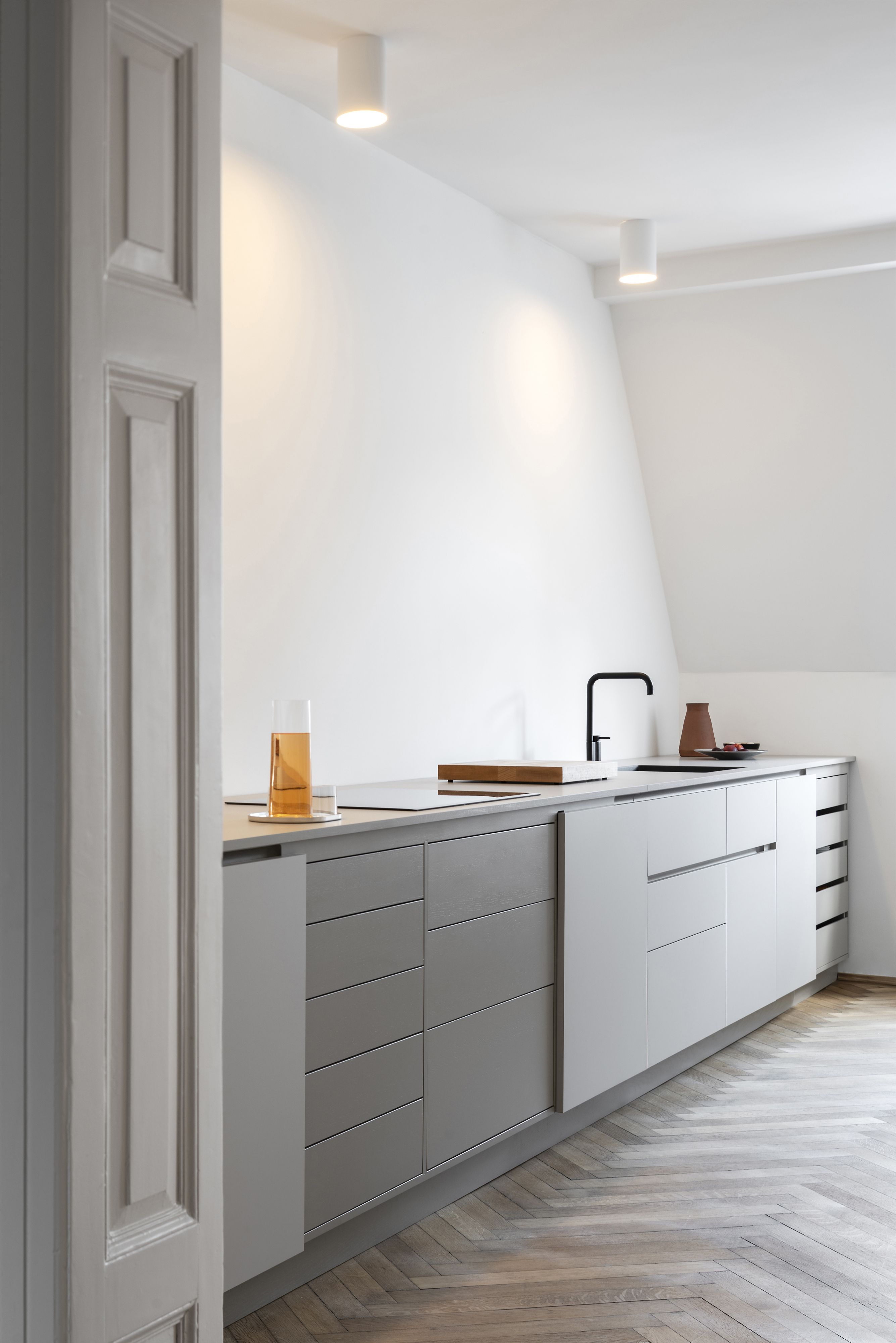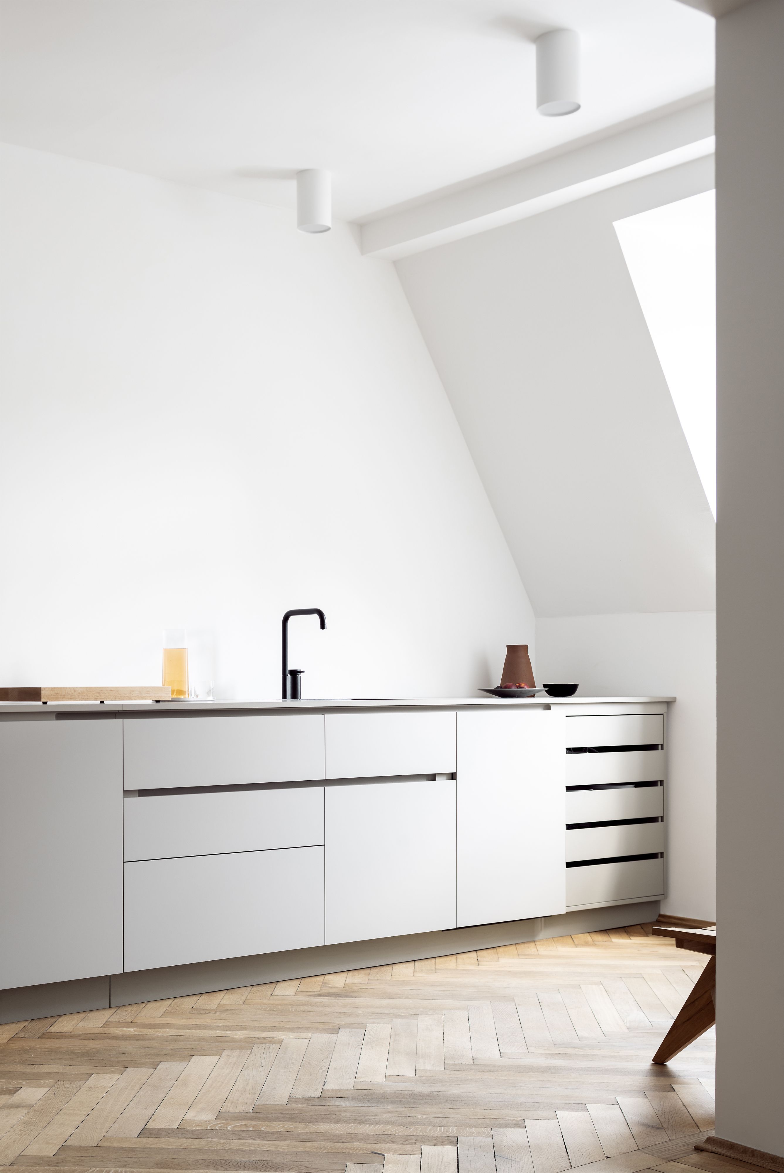 Die Ästhetik systemischen Denkens: J*GAST entwirft Küchen, die für eine maschinelle Produktion bis ins Detail handwerklich durchdacht und verarbeitet sind. So entsteht eine systemisch geprägte Individualität, die selbst zum bestimmenden Gestaltungselement wird. Die Rahmenkonstruktion bleibt dabei an einigen Stellen der Küche ablesbar, ebenso wie das konstruktive Element des Griffbalkens aus massivem Holz. „Möbel müssen so komplexe Probleme lösen wie große Baukonstruktionen“, sagte einst Jean Prouvé. J*GAST geht noch einen Schritt weiter: Möbel von J*GAST fügen sich komplex in die umgebende Baukonstruktion ein – jedoch ohne kompliziert zu wirken. Intelligent, ökonomisch, schnörkellos. Einbauküchen, die sich nahtlos in jede Architektur einfügen.