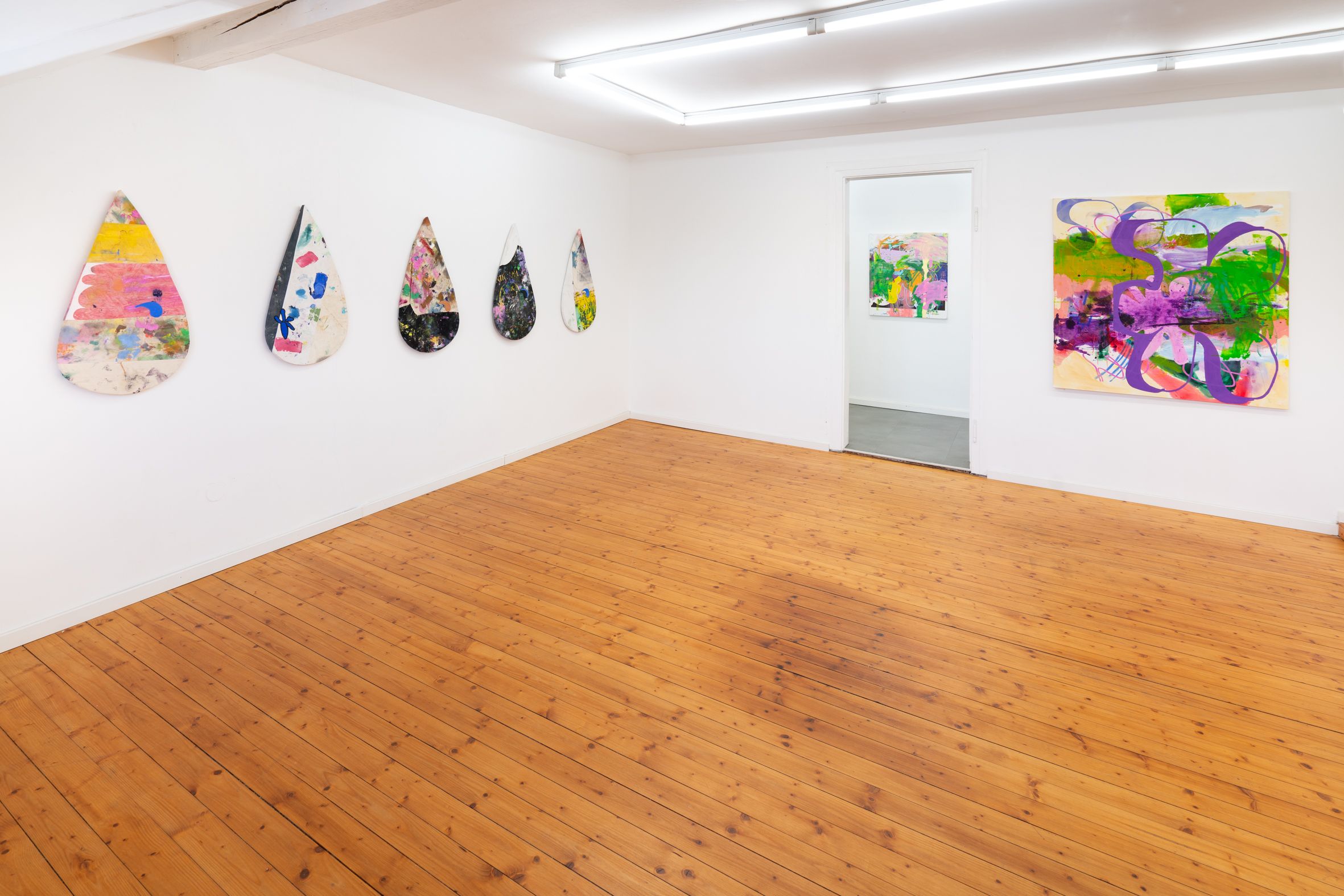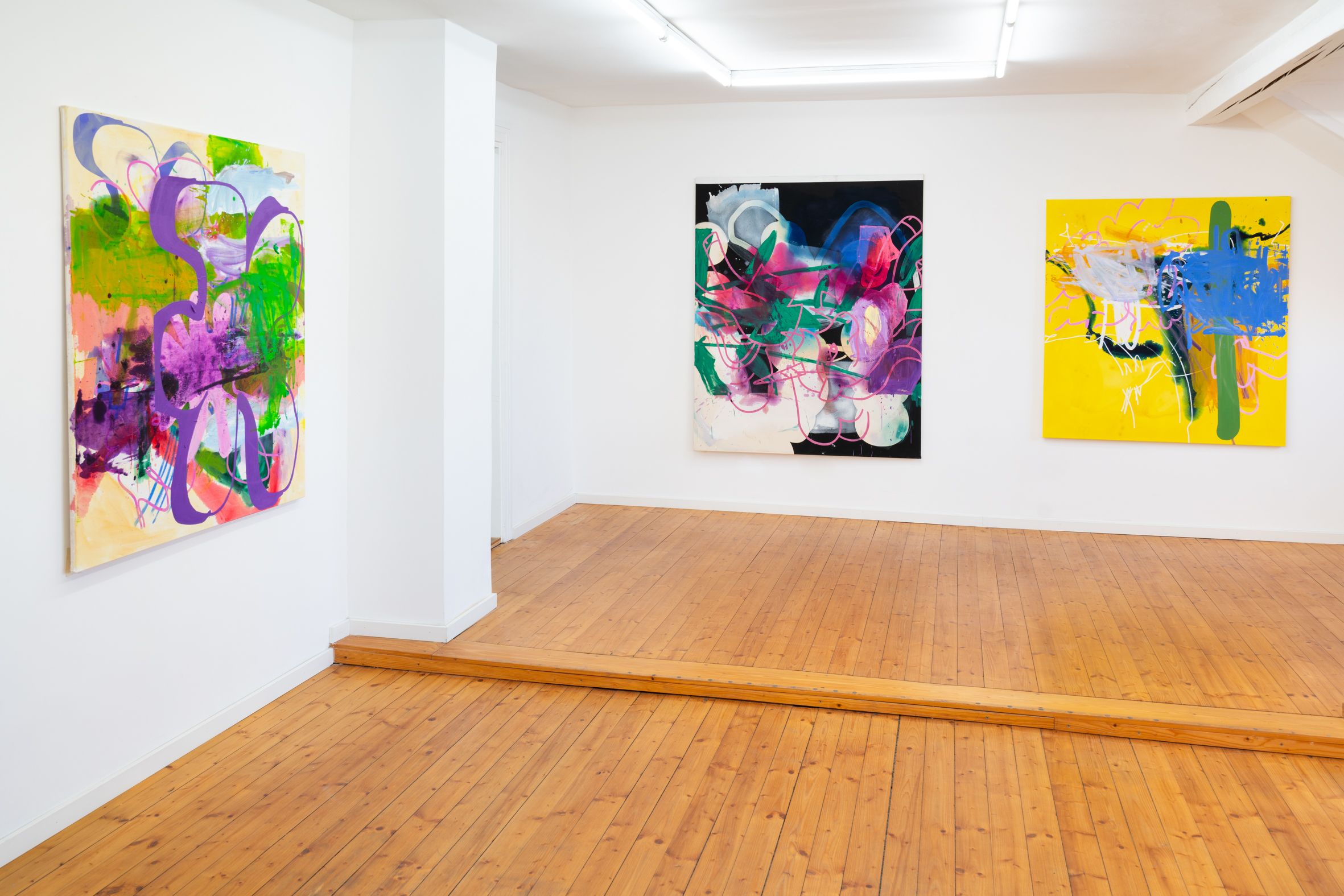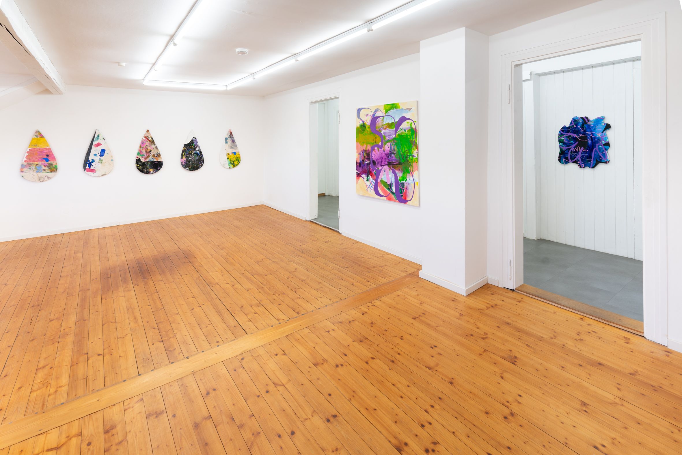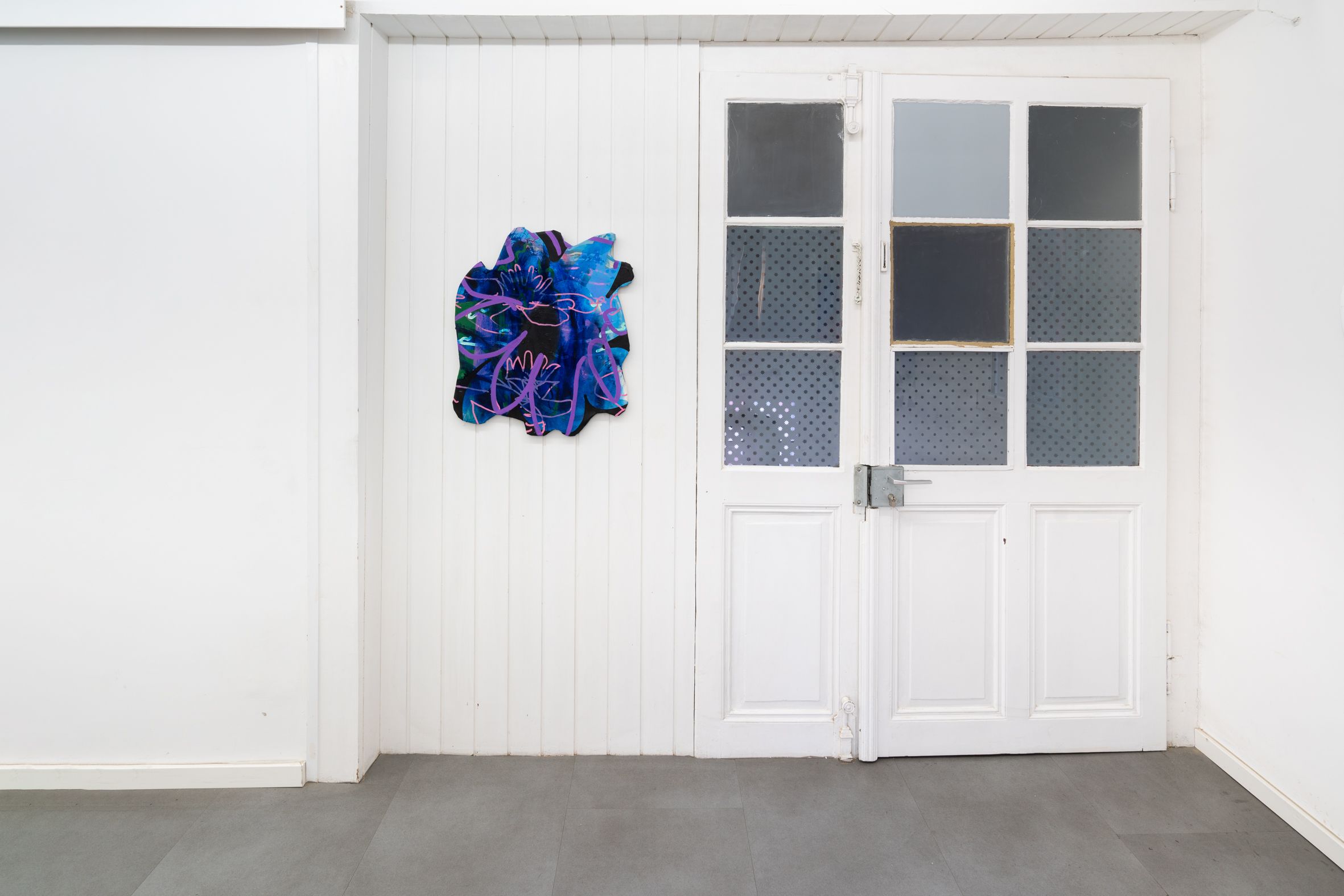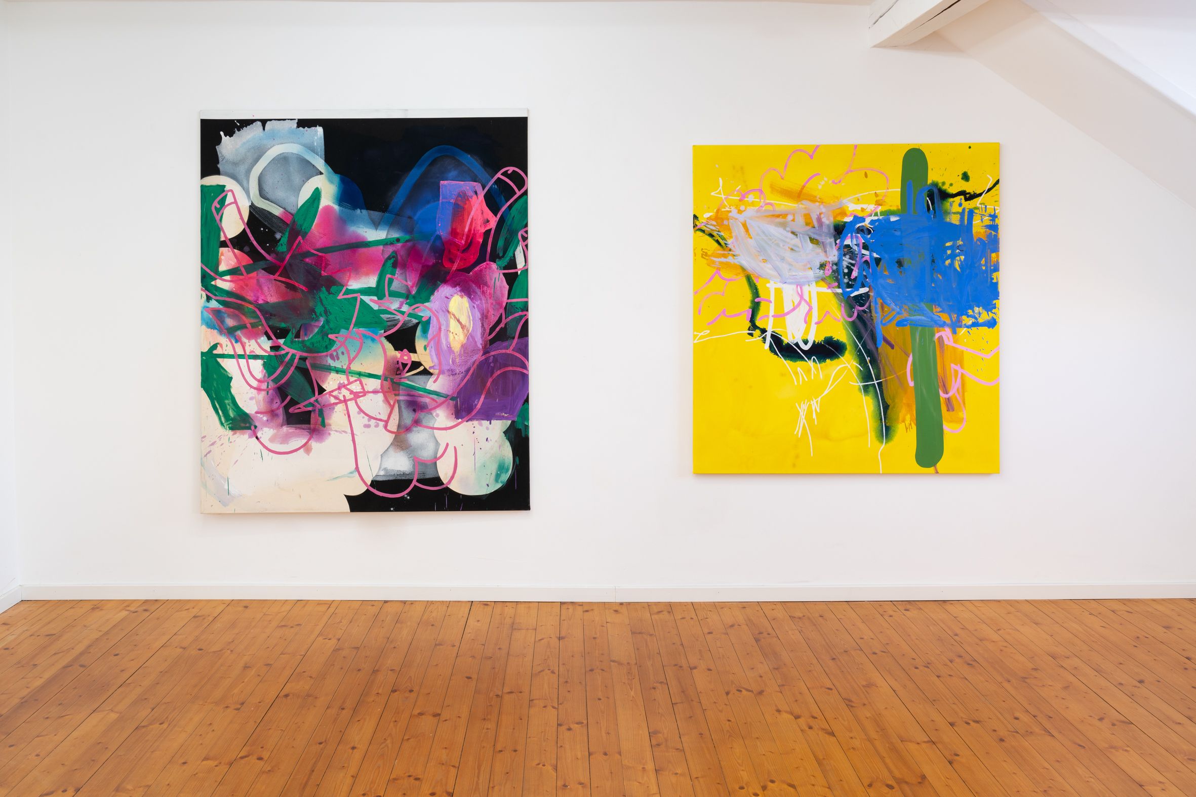 These elements are fragmented, scaled, and reassembled on canvas, where meaning emerges through their relationships rather than as singular motifs. Scribbly, early-digital brushstrokes recall the aesthetics of early graphic programs and are translated into dense, material painterly forms. Bär’s works reflect a present in which digital and analog processes are inseparably intertwined.